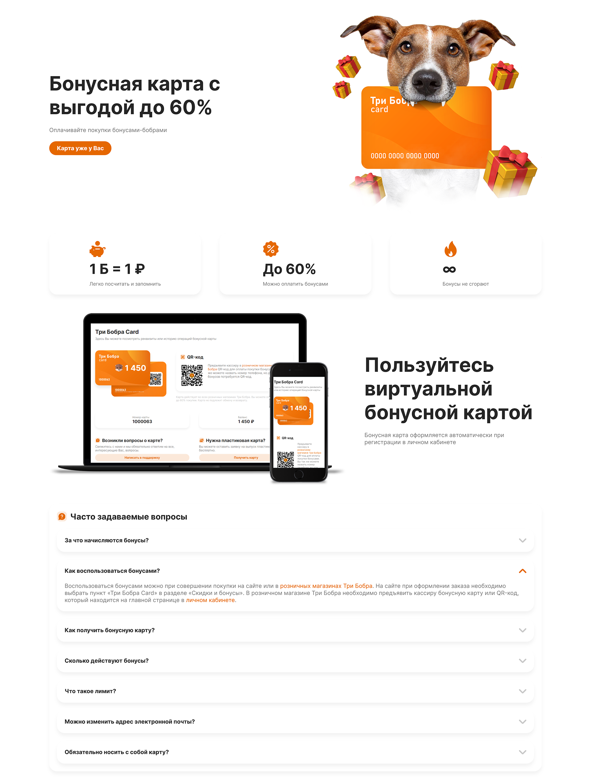 Специально для программы лояльности был создан информационный лендинг, который подробно рассказывает о преимуществах