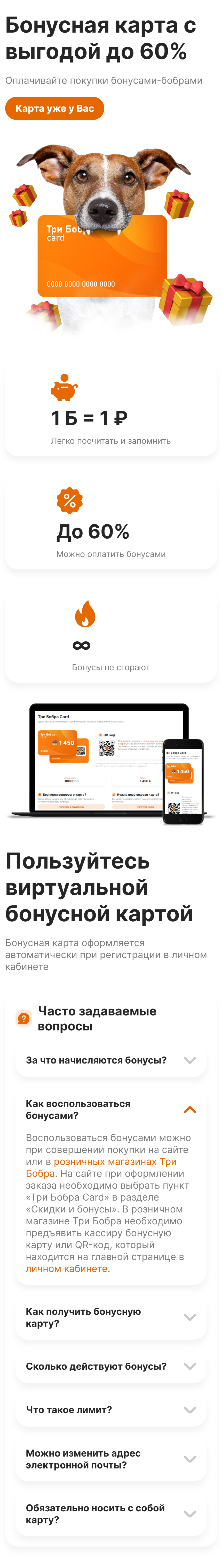 программе. Пользователи могут сразу начать накапливать и тратить «бобры» при совершении покупок. Лендинг также