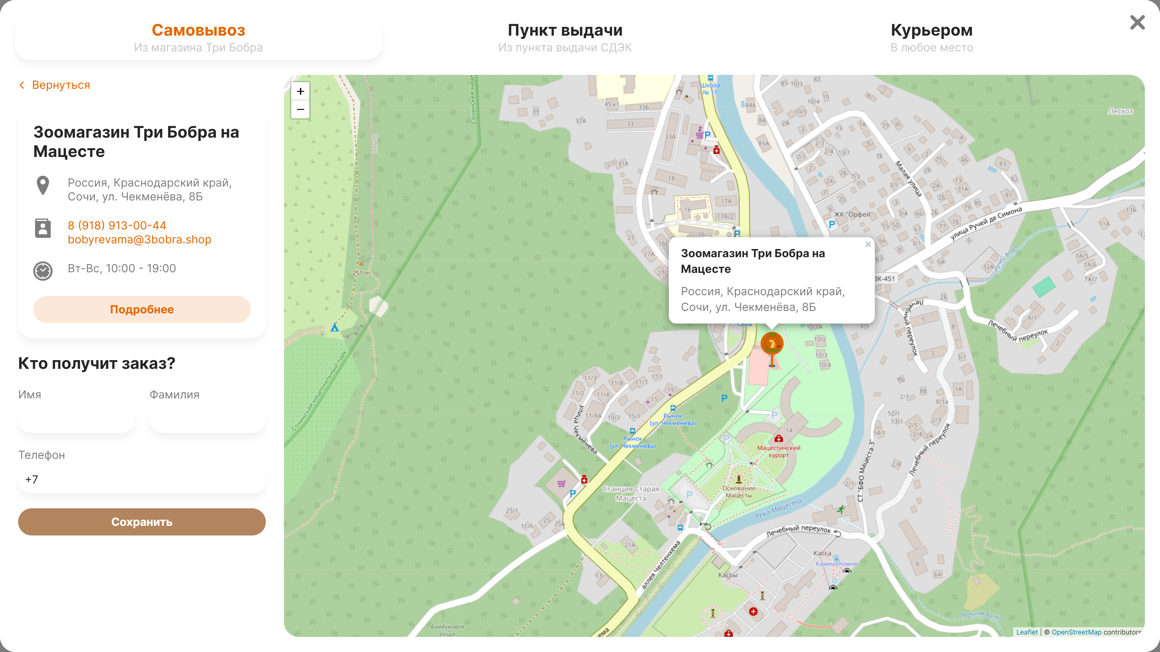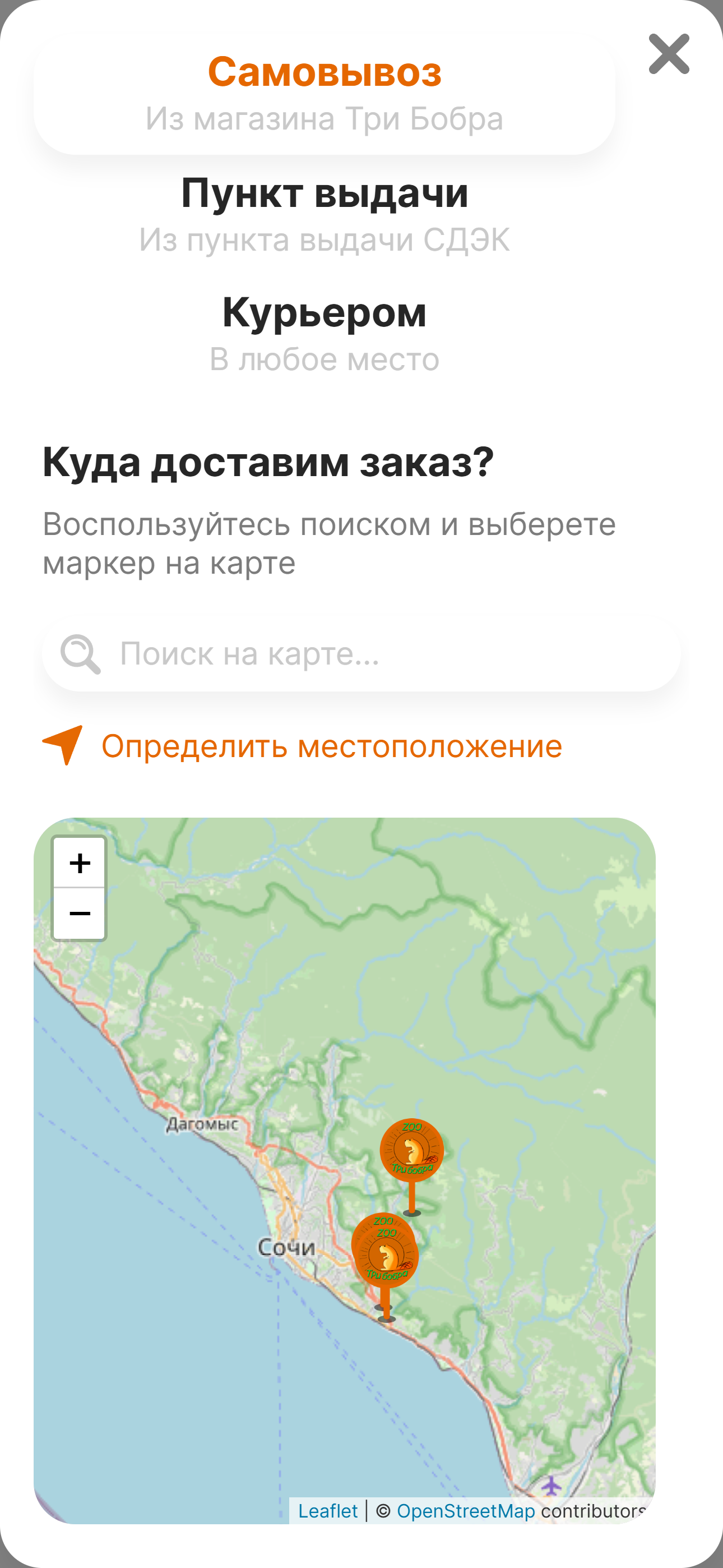 Самовывоз: на карте отображаются все розничные точки зоокомплекса «Три Бобра» с актуальными