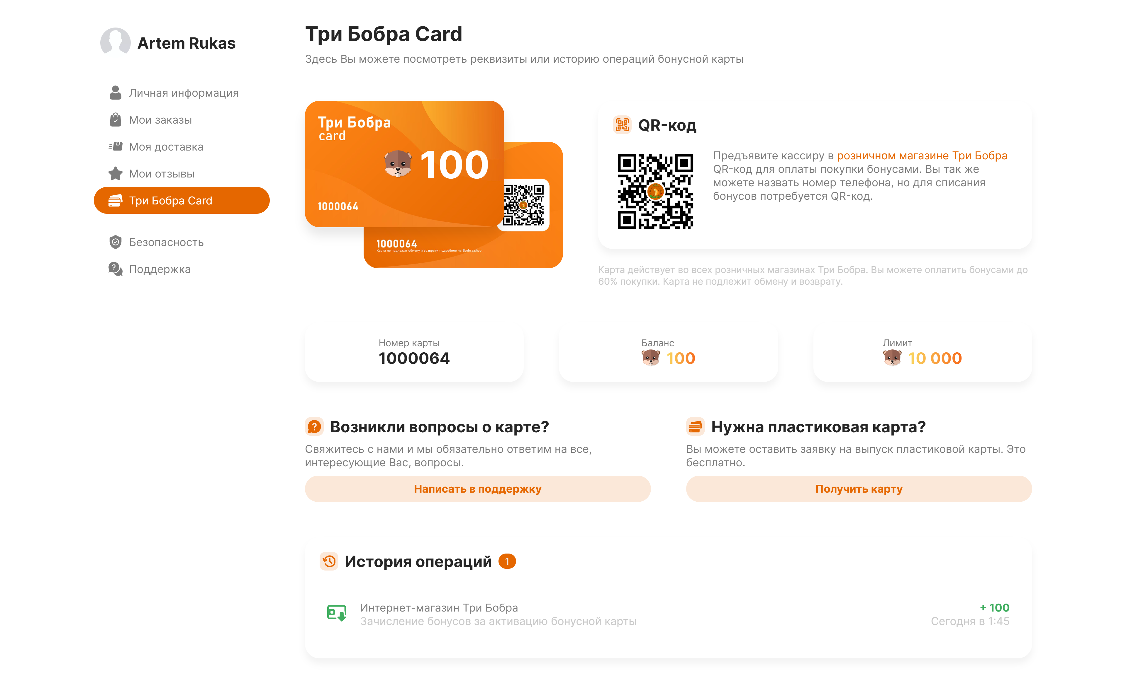 названия «Три Бобра Card» до специальной бонусной валюты — «бобров» (1 бобёр = 1 рубль).