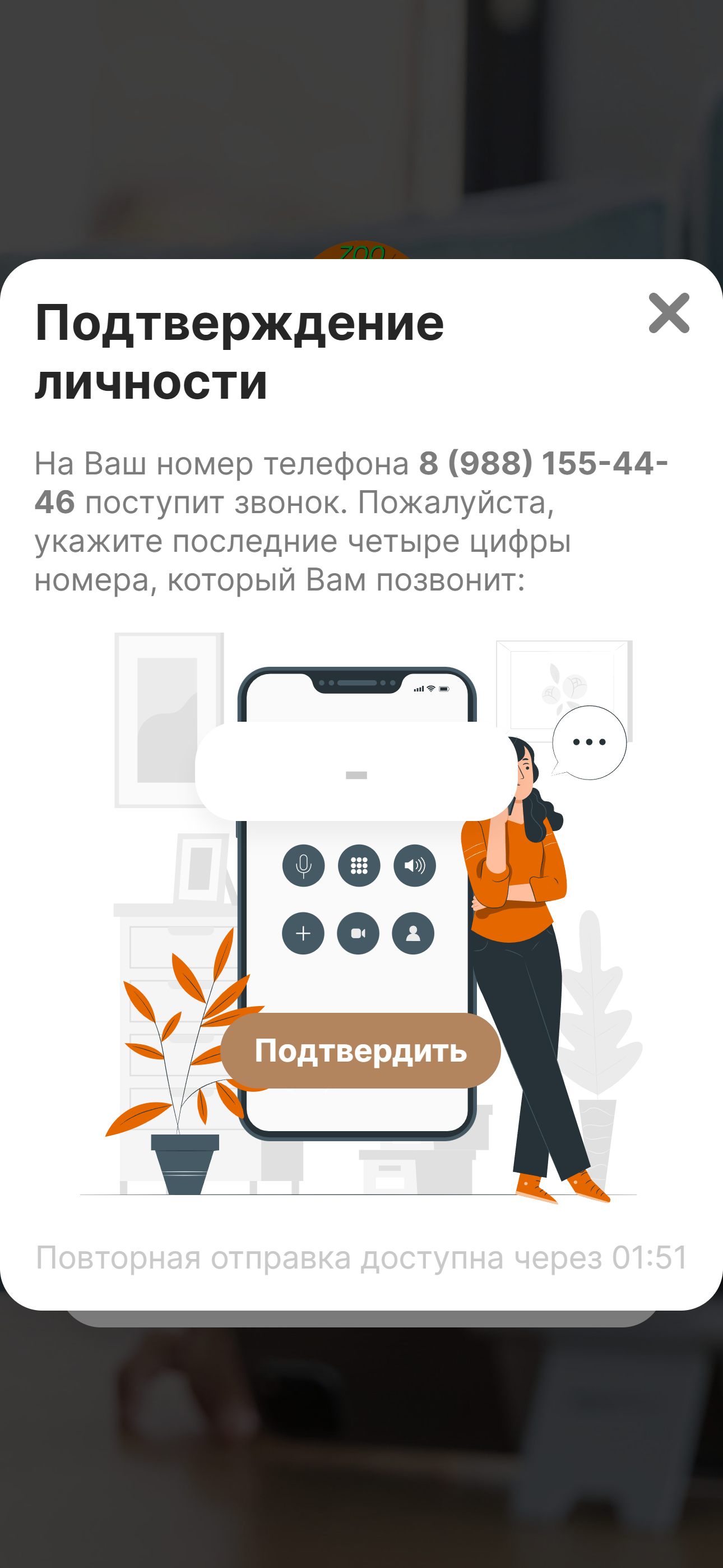 Для подтверждения подлинности номера реализована система верификации через автоматический звонок. На указанный