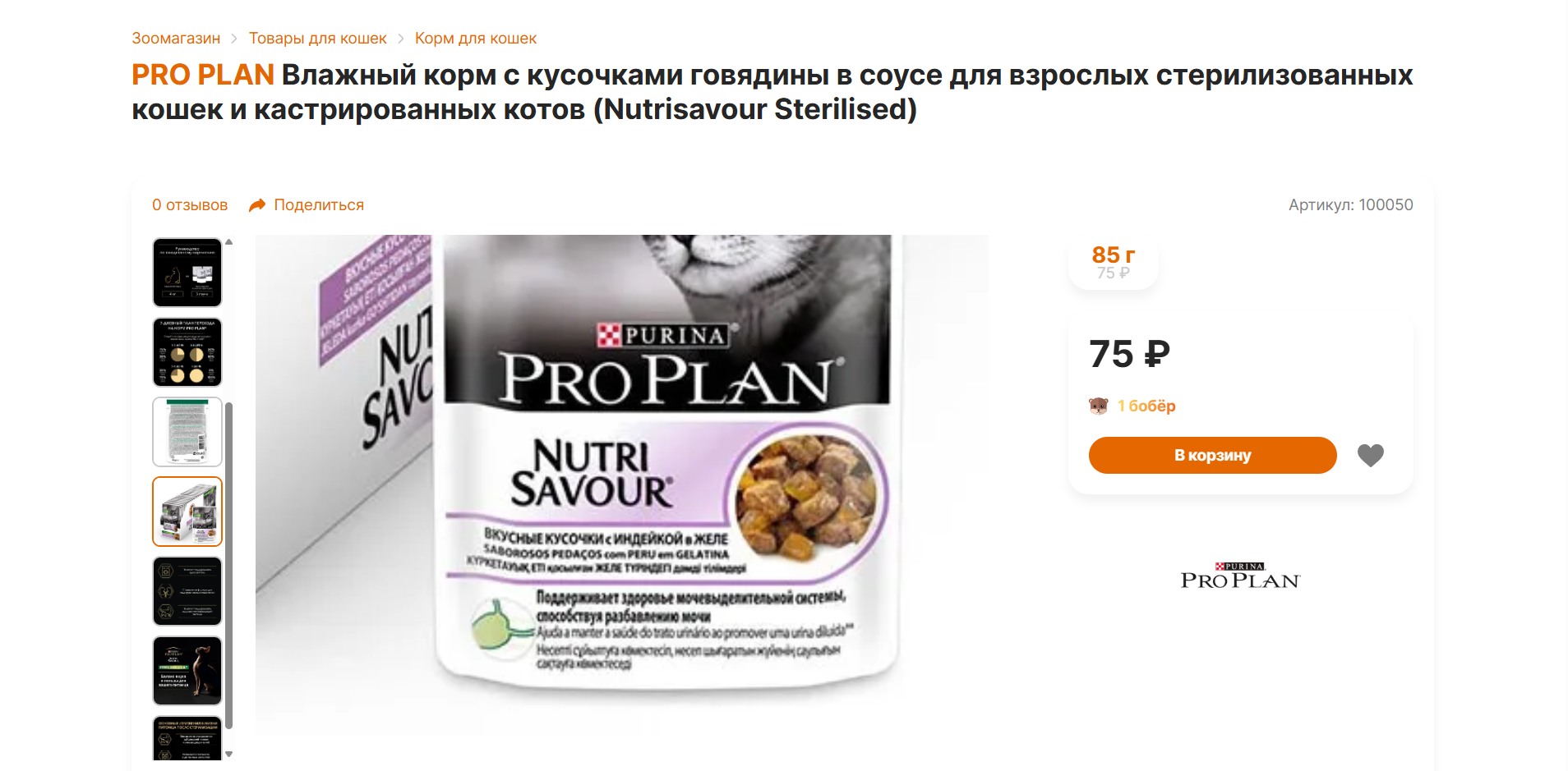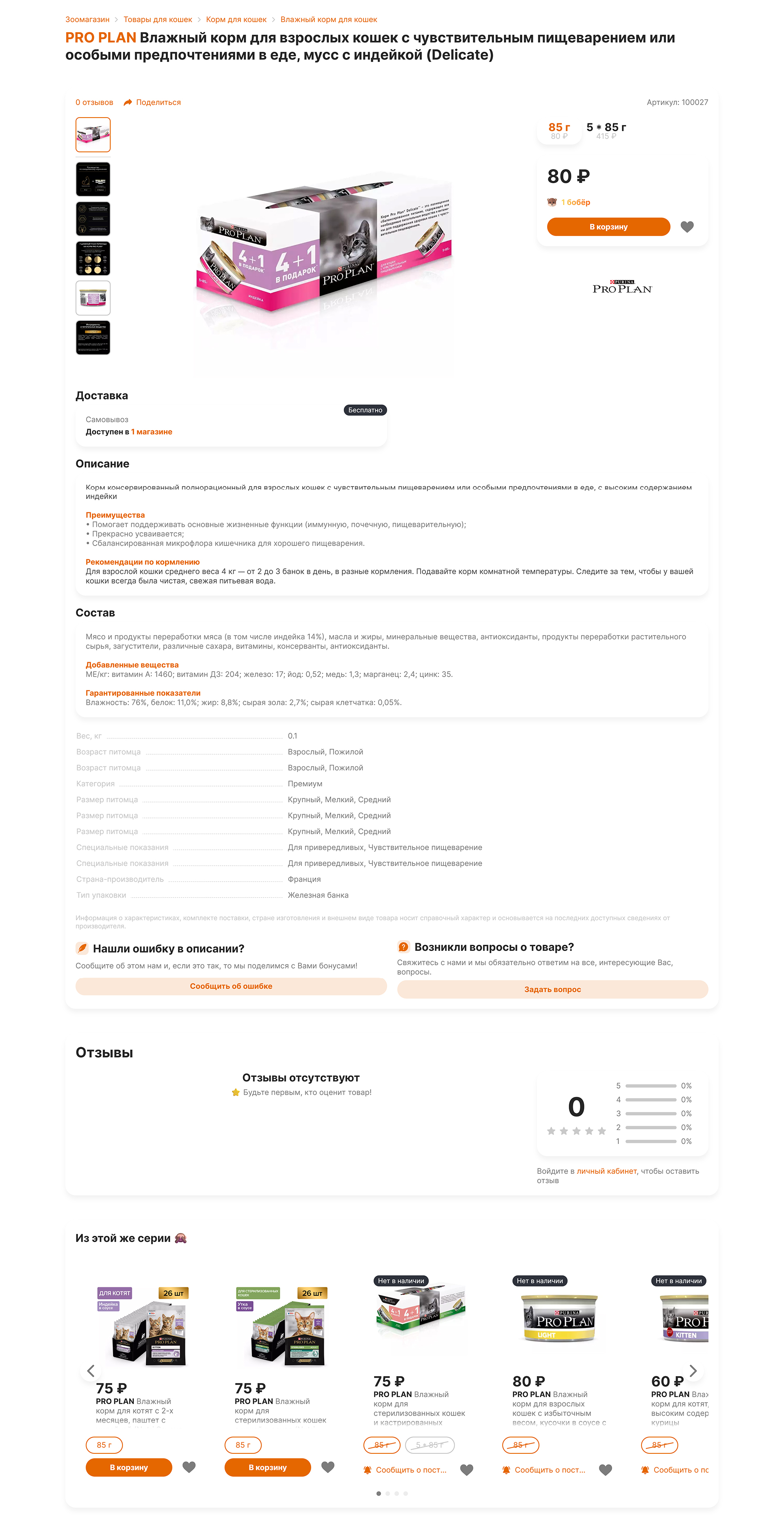 Мы интегрировали систему онлайн-отображения остатков, чтобы покупатель сразу видел, в каких именно магазинах зоокомплекса
