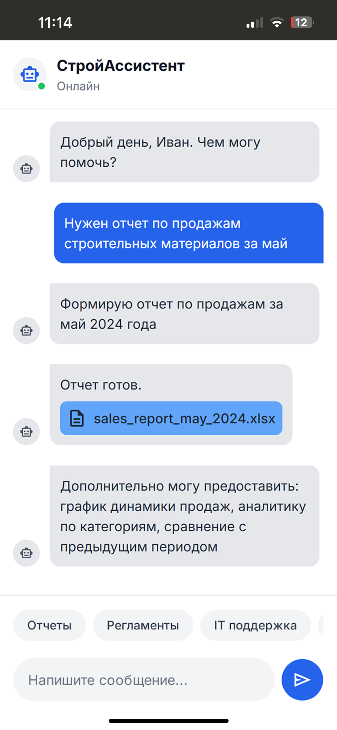 для важных задач. Бот также помогает формировать отчеты, находить документы, отслеживать поставки и решать оперативные